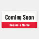 Cette bannière extérieure est rouge vif, noire et blanche. Vous pouvez modifier le texte pour répondre à vos besoins. Vous pouvez ajouter votre message personnalisé (indiqué : Prochainement Nom de l'entreprise). Le dessus est blanc avec du texte noir. Le bas est rouge vif avec du texte blanc pour votre numéro de téléphone ou le texte personnalisé. Tout le texte peut être modifié ou supprimé.