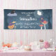 Une banderole de bienvenue colorée pour votre fête d'anniversaire d'Halloween avec une jolie petite sorcière violette assise sur un champignon rouge, un joyeux visage Citrouille, des fantômes Éffrayants, des arbres sombres, des araignées sournoises, une Pleine lune dans une nuit de brouillard bleu et de vieilles maisons dans l'arrière - plan. Vous pouvez personnaliser le texte à partir du menu. Veuillez me contacter pour toute aide. Des produits correspondants sont disponibles.