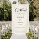 " Bienvenue dans notre bonheur éternel ! " Bannière beige avec vos noms et date. Design élégant, moderne et minimaliste avec une police manuscrite.