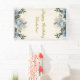 Élégante bannière "Joyeux Anniversaire" bleu et blanc, fête d'anniversaire féminine fleurie et verdoyante, mise en forme verticalement. Personnalisé avec le nom de l'invité d'honneur. Contactez-moi pour obtenir de l'aide sur vos personnalisations ou pour demander des produits Zazzle correspondants ou coordonnés supplémentaires pour votre groupe.