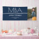 Une bannière qui célèbre un diplômé de MBA avec des mots et une photo. Cette décoration minimaliste est dans les tons bleu et blanc. La photo est un modèle qui est censé être échangé pour le vôtre. Tous les mots et les deux couleurs peuvent être customisés. <i>Photographie © Storytree Studios, Stanford, CA</i>Photo bleue Doctorat Bannière Conception de jour férié | ©Melissa Patton - Designer
