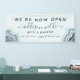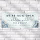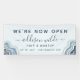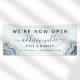 Bannière d'entreprise Blue Glitter Agate Geode Luxe Maintenant Ouverte. Parfait pour les artistes maquilleurs, les coiffeurs, les cosmétologues, et plus encore !