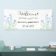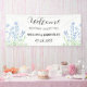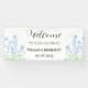 Moderne, élégante, cloches bleues, aquarelle d'été bleu floral Mariage Accueil bannière. Bannière fleur sauvage rustique et violette. Parfait pour les jeunes mariés. Vous pouvez le personnaliser avec le nom et la date de la mariée et du marié.