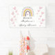 Un adorable arc-en-ciel boho avec rose, violet, or, turquoise, coeurs et points ornent cette jolie bannière de baby shower. Consultez notre site Web pour trouver les produits de réception et d'invitation correspondants.