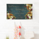 Bouquets d'angle fleuris en boho éthérée dans les tons de blanc hivernal, or, orange et rouge foncé avec verdure sur un look turquoise foncé texturé arrière - plan "Bienvenue" vos invités à ce qui est sûr d'être un événement "Mariage" mémorable. Il vous suffit d'ajouter vos noms et votre date de mariage à compléter. Conception composite par Holiday Hearts Designs (droits réservés).