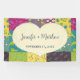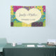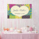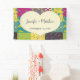 Créez une bannière personnalisée à utiliser pour la signalisation ou une toile de fond à votre mariage. Cette bannière présente un graphique en forme de coeur couleur crème avec des accents de couture imitation qui est prêt à être customisé avec les noms de la mariée et du marié et leur date de mariage. Le coeur est dressé contre un arrière - plan coloré à patchwork.