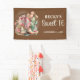 Bannière personnalisée Sweet 16 anniversaire conçue sur un arrière - plan marron rustique avec bottes de cowgirl et roses roses roses. Personnalisée avec le nom de l'invitée d'honneur et sa date de fête.