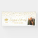 Célébrez votre journée spéciale avec cette bannière de graduation élégante. Cette bannière est ornée de lettres en or "Félicitations !" et d'une casquette de graduation. Vous pouvez personnaliser le texte et la photo. D'autres fournitures de fête et des papeteries sont disponibles dans ma boutique BaraBomDesign.