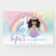 Bannière de fond Whimsical Princess and Unicorn Birthday Party Welcome, avec une licorne arc-en-ciel et une belle princesse. Personnalisez-le facilement et rapidement, appuyez simplement sur le bouton customiser pour réorganiser et formater le style et le placement du texte. Design exclusif (c) Le Happy Cat Studio. Correspondance d'objets en magasin !