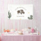 Bannière du parti anniversaire de enfant sur le thème du désert du ranch occidental avec illustration de buffle et de cactus.