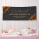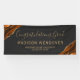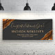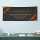 Célébrez son jalon en style avec cette bannière de graduation, avec une agate d'aquarelle orange brûlée, découpée en deux coins avec une parties scintillant en faux or. Les mots "Félicitations Grad" (ou le texte de votre choix) apparaissent dans un élégant script d'écriture dorée au-dessus du nom de votre diplômé sur un arrière - plan noir foncé. Ci-dessous, ajoutez le nom de son école et de son année de diplôme.