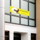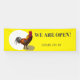 Une entreprise Fun Chicken ou Rooster est une bannière ouverte. Un poulet sur un arrière - plan jaune. Modifiez les mots pour la bannière personnalisée.