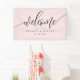 Bienvenue à vos invités avec cette élégante bannière d'accueil mariage rose vif. Avec une belle calligraphie et un design minimaliste, cette bannière apporte une touche sophistiquée à votre décor mariage. La couleur douce et le script moderne créent une atmosphère chaleureuse et accueillante, parfaite pour accueillir les invités à leur arrivée. Customisez avec vos noms et votre date de mariage pour faire un ajout unique et mémorable à votre journée spéciale. Cette bannière durable est idéale pour une utilisation intérieure et extérieure, assurant ainsi votre entrée mariage est élégante et accueillante.