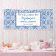 Moderne, élégant, carrelage portugais, bleu et blanc, espagnol, Italie, méditerranéen, douche nuptiale d'été Bannière de bienvenue. Parfait pour les jeunes mariés. Vous pouvez le personnaliser avec le nom et la date de la mariée et du marié.