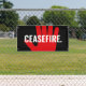 Cessez-le feu rouge blanc noir main en gras texte personnalisé anti-guerre bannière. Texte blanc, main rouge, arrière - plan noir. Texte entièrement personnalisable. Conflit Moyen-Orient / Gaza.