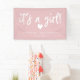 Bannière moderne en baby shower rose avec un script écrit à la main qui dit "c'est une fille !" avec un coeur en dessous. Customisez ce produit en ajoutant le nom et la date de l'événement de la future mère.