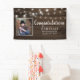 Rustic String Lights Wood Graduation Banner pour annoncer votre diplômé en style! Des panneaux de bois rustique et des lampes à cordes laissent de l'espace pour votre texte personnalisé. Idéal pour les réceptions et fêtes de remise de diplômes ! Facile à customiser avec du texte, des polices et des couleurs. Créé par le designer pro de Zazzle BK Thompson © exclusivement pour Kate's Creations ; veuillez nous contacter si vous avez besoin d'aide, avez des questions, ou souhaitez vous renseigner sur le travail sur mesure.