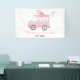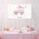 Cette adorable bannière présente un camion de crème glacée aquarelle peint à la main avec des friandises glacées et des ballons aux couleurs pastel.