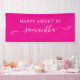 Créez votre propre bannière Happy Birthday personnalisée pour son anniversaire. Customisez le style moderne mignon coquette style arc swash manuscrite calligraphie style et taille de script de calligraphie si nécessaire. Augmentez la taille de la police pour les noms plus courts... réduisez la taille de la police pour les noms plus longs. Modifiez la couleur arrière - plan rose-chaud ou le texte blanc et déposez les couleurs de l'ombre pour qu'elles correspondent à ses couleurs préférées.