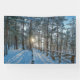 Banderoles Chemin en bois sur la forêt d'hiver enneigée