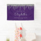 Bienvenue aux invités avec cette bannière de fête chic et glamour de 40e anniversaire, avec une bordure brillante en faux argent parties scintillant drip et arrière - plan violet. Personnalisez-le avec son nom en écriture manuscrite gris argent, avec l'anniversaire et la date ci-dessous en police sans serif.