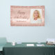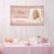 Elégant Moderne Sparkle rose or parties scintillant métal Personnalisé Photo Happy 50th Birthday Party Banner. Cette Fille Adulte feminine CINQUANTE (FIFTIETH) décoration de fête d'anniversaire avec du texte "Happy 50th Birthday" (OU N'IMPORTE QUEL ÂGE) dans un script de calligraphie manuscrit élégant et nom personnalisé sur un arrière - plan de papier métallique contrebalancé en or rose rousse ou rose avec cadre de parties scintillant glam lâche autour. Idéal pour une fête d'anniversaire féminine adulte ou féminine, cela saisit parfaitement l'essence d'une fête d'anniversaire rose moderne en or ou en parties scintillant rose vif. Parfait pour une bannière d'accueil ou même une décoration de fête.