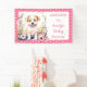 Chien chiot mignon assis dans des fleurs roses personnalisé pois rose bannière Baby shower de bienvenue.
