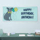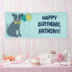 Jetez une fête d'anniversaire sur le thème du chien avec des fournitures de fête personnalisées. Cette bannière est prête à être customisée avec votre message et présente une illustration d'un pit bull chiot portant des lunettes et une cravate arc à côté de ballons de fête.