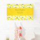 Une bannière avec un motif de citrons souriants et des mots verts et arrière - plans feuilles verts, y compris un nom personnalisable, événement, et date sur une zone jaune. Cet article fait partie d'une collection de baby showers au citron.