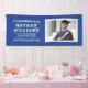 Simple et élégante coutume "Félicitations" panneau de graduation comprend une photo senior du diplômé avec un texte moderne et masculin qui peut être personnalisée avec le nom de la diplômée, l'école, et l'année de classe. Notez que le texte bleu et blanc royal peut être modifié pour être coordonné avec les couleurs de l'école ou de la fête.