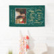 La bannière élégante de la fête de remise des diplômes présente un élégant design "Class of 2024 Party" en faux script de feuille d'or avec de jolis accents de défilement blanc. Personnalisez ce design avec une photo senior du diplômé, et utilisez l'élégant texte personnalisé pour leur nom et l'école. Notez que la couleur vert émeraude de l'arrière - plan peut être modifiée pour être coordonnée avec les couleurs de l'école ou de la fête.
