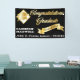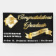 Écriture en noir et or "Félicitations Graduate" sur la droite avec un diamant en forme de diamant, ton or et emblème blanc sur la gauche avec une couche d'emblème en or. Une bannière de couleur or sur le centre droit indique "Classe de 20xx" pour vous de personnaliser avec votre année de graduation. À gauche se trouve le nom du diplômé en lettres blanches et en bas, l'école, le collège ou l'université du diplômé. Design par Holiday Hearts Designs (droits réservés).