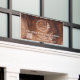 Code QR de menuiserie en bois moderne et élégant Bannière de signalisation pour l'entreprise de construction comporte un motif de fond de meubles en bois élégant avec le nom de votre entreprise, site web ou texte personnalisé, logo et code QR. Personnalisez en modifiant le texte dans la zone de texte fournie. Conçu par ©Evco Studio www.zazzle.com/studio/evcostudio