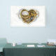 Coeur steampunk mécanique, volumétrique, avec manomètre, acier et or sur arrière - plan blanc. Style Steampunk.