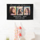 Cette bannière de graduation personnalisée pour célébrer votre diplômé présente un montage photo de trois photos sur un arrière - plan noir. Ci-dessus en noir il dit "Félicitations" et ci-dessous "diplômé 2023" avec votre nom et l'école à personnaliser. Conçu par l'artiste Susan Coffey