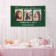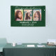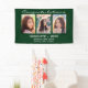 Cette bannière de graduation personnalisée pour célébrer votre diplômé présente un montage photo de trois photos sur un arrière - plan vert. Ci-dessus en blanc il dit "Félicitations" et ci-dessous "diplômé 2023" avec votre nom et l'école à personnaliser. Conçu par l'artiste Susan Coffey