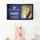 Célébrez votre diplôme d'études secondaires ou collégiales avec ce panneau de bannières personnalisées et élégantes, avec un titre de typographie de style de calligraphie manuscrite à deux tons brossé bleu marine arrière - plan et argent bouchon et arrière - plan avec un GRATS moderne, l'année de classe modifiable en argent pour les années futures, la photo et le nom du diplômé. Contactez le concepteur via Zazzle Conversation ou makeitaboutyoustore@gmail.com si vous souhaitez modifier ce design, dans une autre couleur, sur un autre produit ou si vous souhaitez des éléments de coordination.
