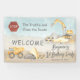 Créé avec une aquarelle muette moins traditionnelle palette, ce design de 1er anniversaire "Bienvenue" comprend un camion à benne et une pelle-pelle sur un chantier de construction avec la légende "Stop the Traffic and Close the Roads" et le nom de votre enfant, l'âge d'anniversaire et la date. Conception composite par Holiday Hearts Designs (droits réservés).