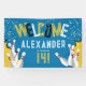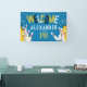 Le Cool Bowling Blue and Yellow Strike Birthday Party Welcome Banner déborde d'énergie, orné d'une typographie audacieuse en noir, bleu et jaune sur un fond bleu vif. Des épingles de quilles blanches se dressent fièrement au milieu d'une cascade de confettis colorés, ajoutant une couche supplémentaire de festivité et de joie. Cette bannière n'est qu'une pièce d'une collection complète sur le thème du bowling, incluant des invitations, des serviettes, des assiettes en papier, et plus encore. Il promet une fête animée, où chaque détail, de l'imagerie frappante au confetti ludique, contribue à une fête d'anniversaire inoubliable remplie de joie et d'excitation.