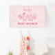 Une coquette rose moderne Baby shower tiré à la main Décor de bannière design typiquement mêle des éléments fantaisistes et ludiques à une esthétique contemporaine. La taille est un choix standard et populaire, mais d'autres formats sont disponibles. Le design est dominé par des tons doux et roses, créant une atmosphère douce et féminine. "Coquette" évoque une atmosphère flirtante et charmante, avec des illustrations délicates et dessinées à la main d'éléments. Police manuscrite de typographie moderne avec polices sans-serif minimalistes pour un look équilibré et sophistiqué. Cette invitation évoque un sentiment de chaleur et d'excitation pour la célébration à venir, mêlant la joie d'un baby shower à un design artistique et tendance.