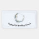 Bannière d'anniversaire avec une illustration mystique. Une lune bleu foncé avec un contour élégant en cercle mince et des fleurs blanches fleurissent le long de ses bords.
