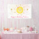 Cette mignonne bannière d'anniversaire présente un doux soleil avec une aquarelle rose arrière - plan et des accents de feuille d'or faux.