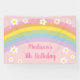 Cette adorable bannière d'anniversaire présente des marguerites dessinées à la main et un arc-en-ciel aux couleurs pastel.
