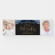 Bienvenue aux invités avec cette bannière photo chic et glamour de 90ème anniversaire, avec une bordure en aquarelle bleu marine, découpée avec de la fausse parties scintillant or sur un arrière - plan noir. Remplacez facilement les deux exemples d'images par des photos de l'invité d'honneur. Personnalisez-la avec son nom dans un texte doré sous les mots "Joyeux 90e anniversaire."