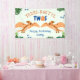 Drôle dinosaure bannière de fête de 2ème anniversaire avec des couleurs bleu vert et orange et thème safari. Personnalisez-le avec les détails de votre événement. Conception Unisex pour un garçon ou une fille.