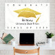 Annoncez au monde que votre diplômé préféré a atteint son objectif avec cette bannière personnalisée, simple, moderne et époustouflante. Une typographie noire, graphique et audacieuse et une icône de casquette en faux or doré sur un fond blanc. Personnalisez le texte personnalisé avec le nom de votre diplômé, la mascotte ou le nom de l'école et l'année de promotion. Choisissez parmi des options intérieures ou extérieures. Des invitations, des cartes de remerciement, des décorations de casquette, des ventilateurs, des serviettes, des assiettes et d'autres cadeaux de fin d'études assortis sont également disponibles dans cette collection tendance et élégante. Garantie de préserver les souvenirs chéris de leur occasion spéciale !