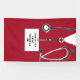 Bannière de fête de fin d'études d'école d'infirmières avec un design créatif de tenues d'hôpital rouges pour le diplôme d'infirmière. Modifier le texte pour ajouter le nom et les informations médicales.