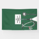 Félicitations à l'école de médecine créative décoration de bannière pour le grade de médecin avec gommage vert unique, stéthoscope et drôle couteau suisse. Pour personnaliser modifier le texte pour ajouter le nom du médecin.