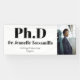 Une bannière qui célèbre un doctorat avec des mots et une photo. Cette décoration minimaliste est décorée dans les tons blanc et noir. La photo est un modèle qui est censé être échangé pour le vôtre. Ajoutez votre photo et votre texte, ajoutez-le à votre panier, puis utilisez-le pour célébrer le diplômé ! Diplômé Photo PhD Graduation Bannière Conception de jour férié | ©Melissa Patton - Designer
