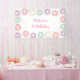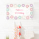Cette adorable bannière présente des beignets colorés avec des confettis de parties scintillant en faux or.
